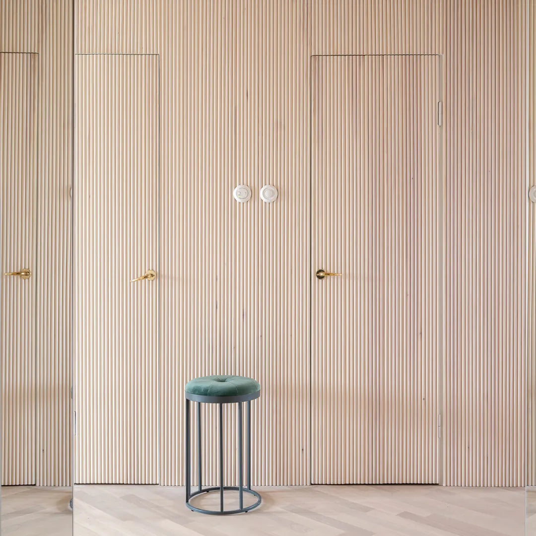 Finger-jointed panels are connected using male and female tongues. This gives the panel a particularly smooth and durable structure. The result is a material that combines the natural look of wood with industrially finished quality. Finger-jointed panels are especially suitable for wall and ceiling cladding, but also for smaller interior design solutions.