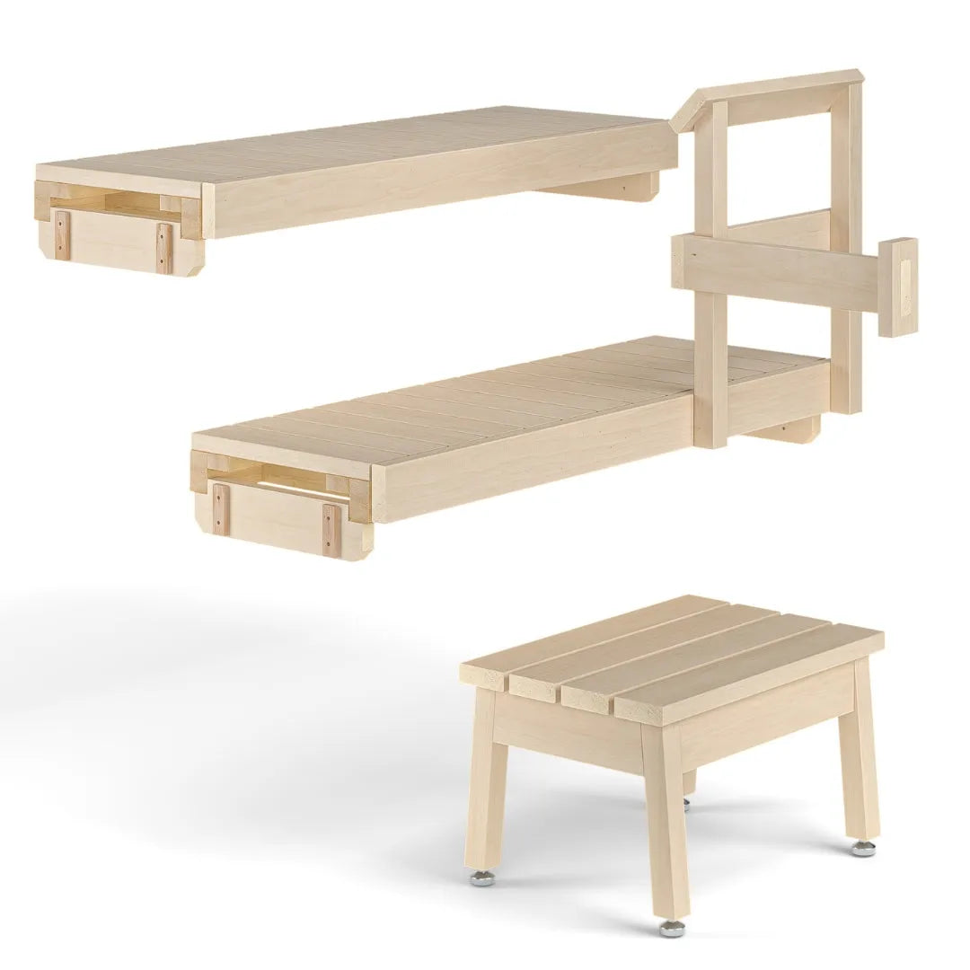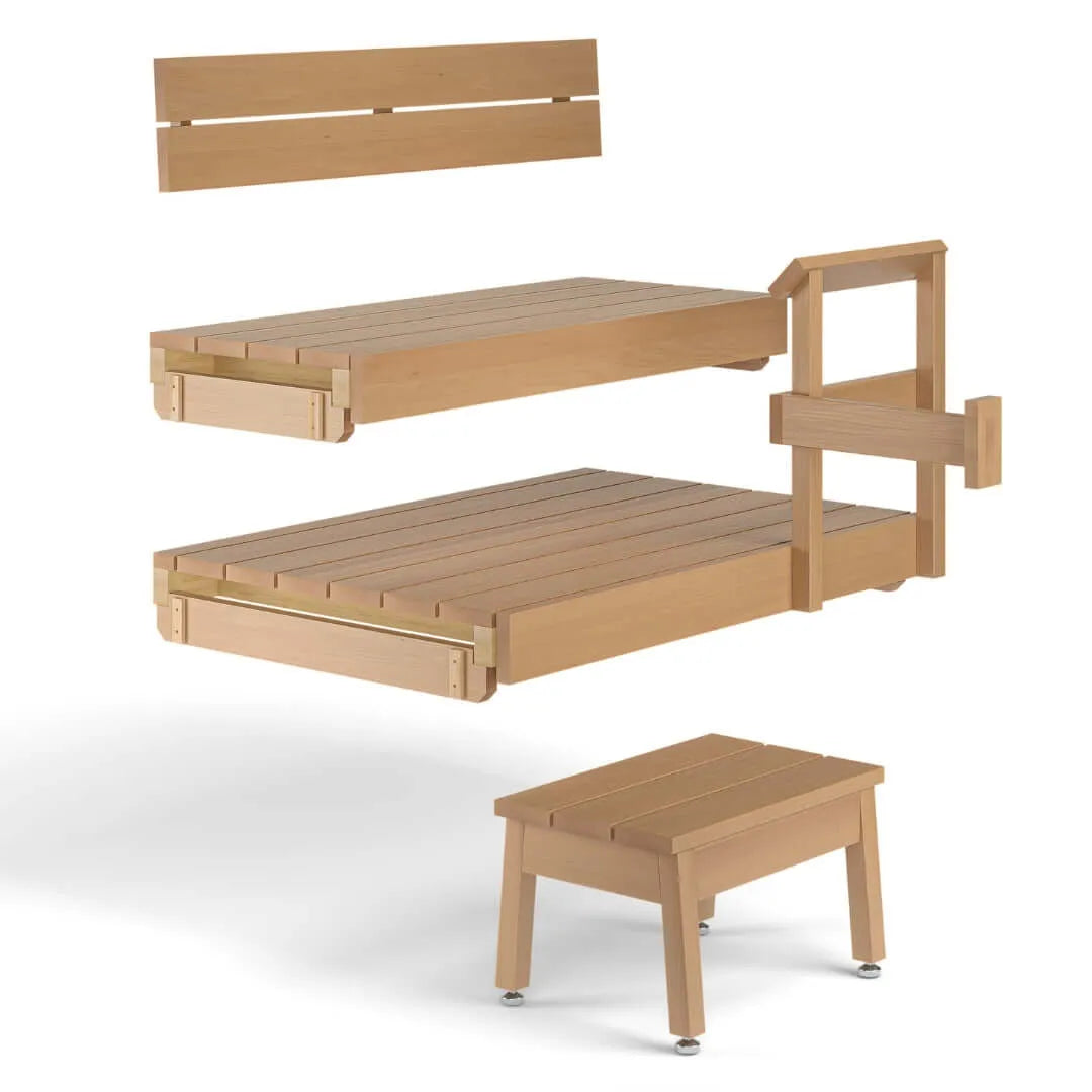 Explore our selection and order custom ready-made sauna benches and other sauna furniture for your home!