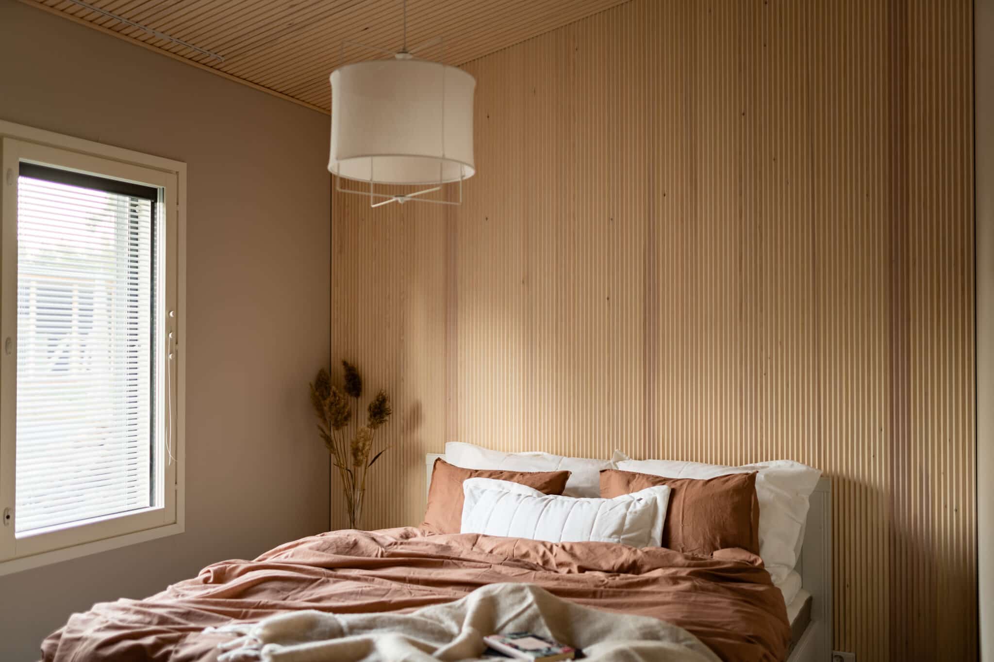 Panels designed for humid spaces are pre-treated and suitable for use as is. Untreated panels are recommended to be treated with a treatment agent intended for the space, such as sauna protection.