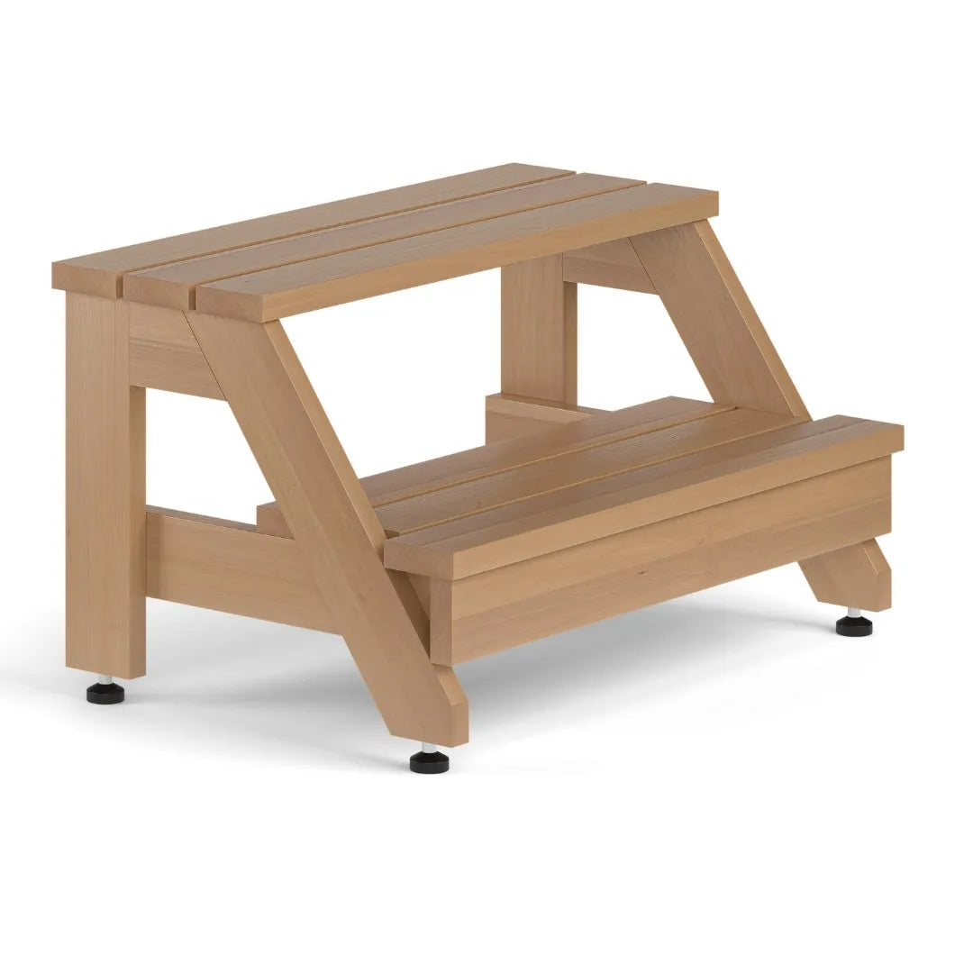 The practical 2-step stool suits many saunas. The low step height and adjustable legs increase safety, especially when descending. The sturdy sauna stool ensures climbing onto the sauna benches is effortless and safe. Choose your preferred material from several options.