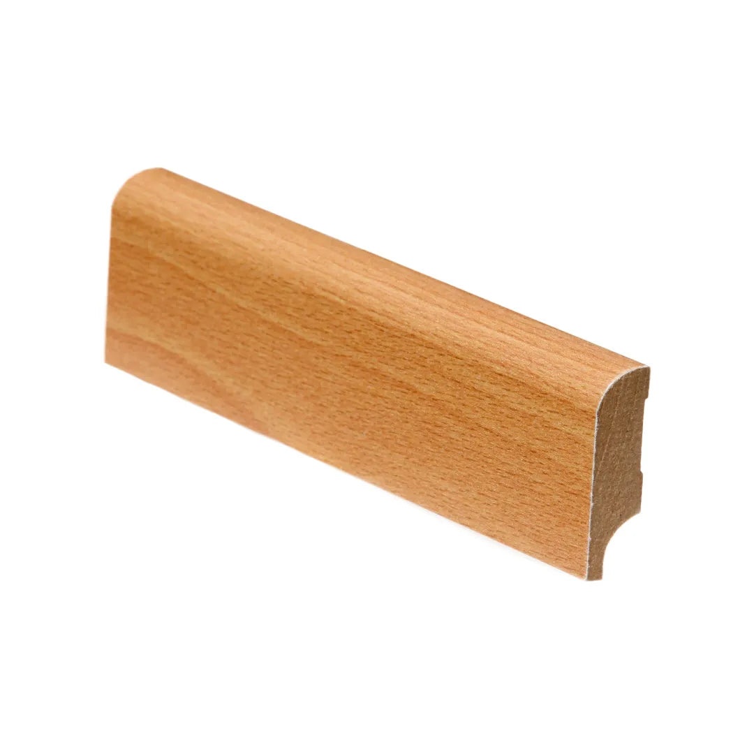 Beech-toned MDF skirting board is coated with durable melamine, ensuring a consistent product without color differences.