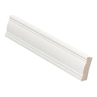 A white decorative baseboard made of knot-free pine is suitable for dry spaces as well as utility rooms.
