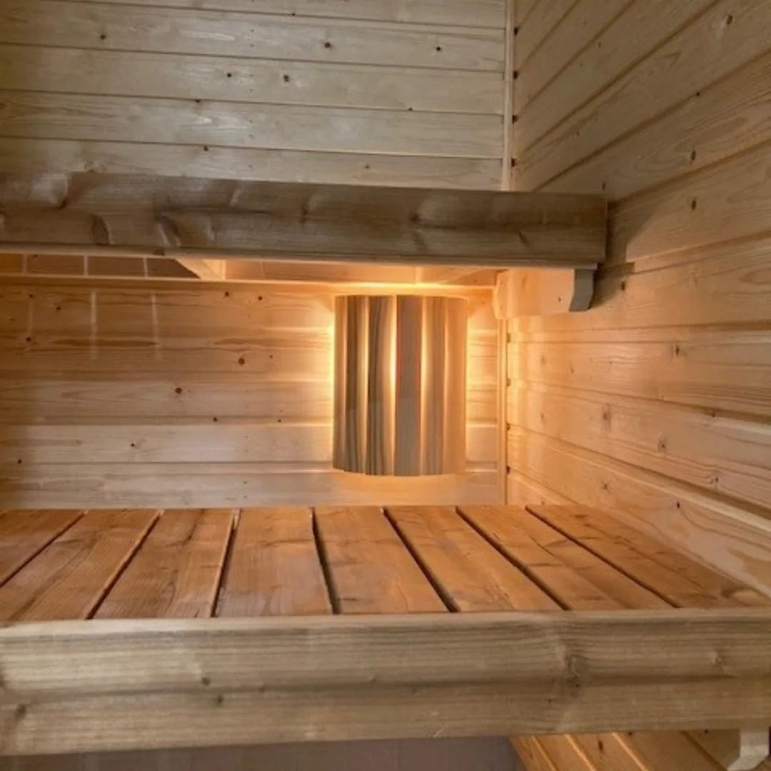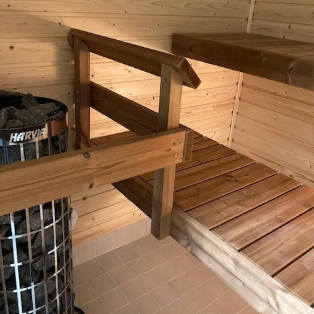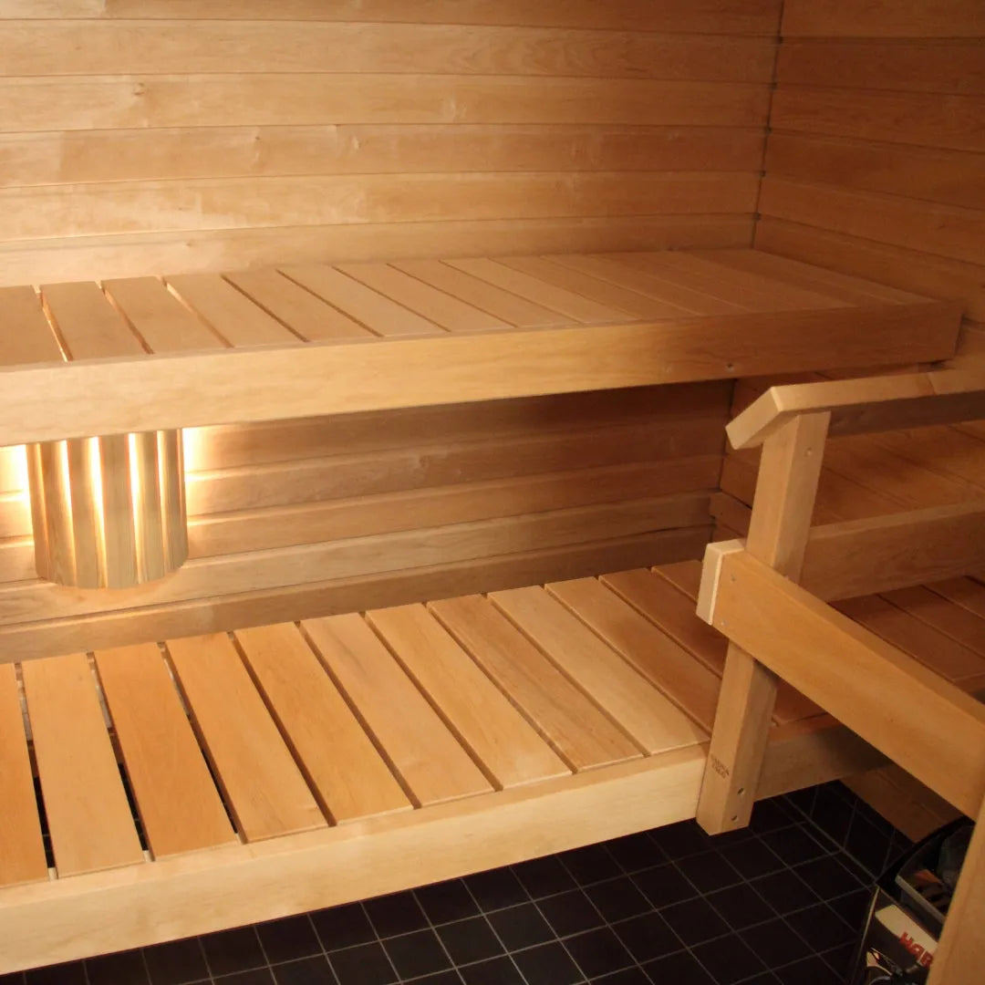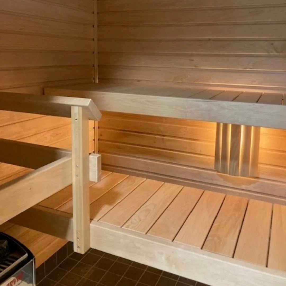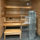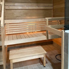 - Includes stool, sauna stove railing, and bench supports (factory considers these suitable for the space)