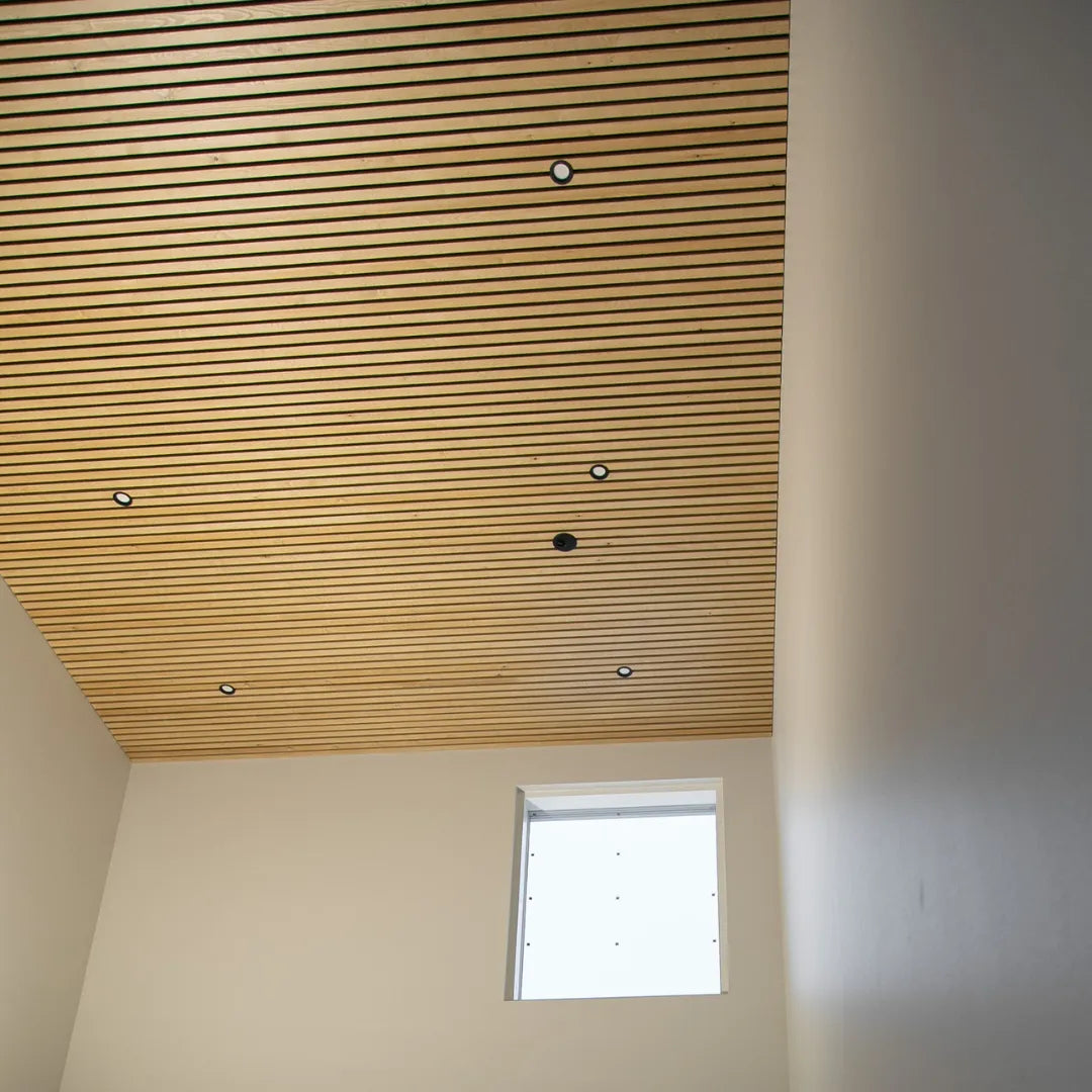 Ceiling/wall slats made from domestic pine are a stylish choice for home interiors.