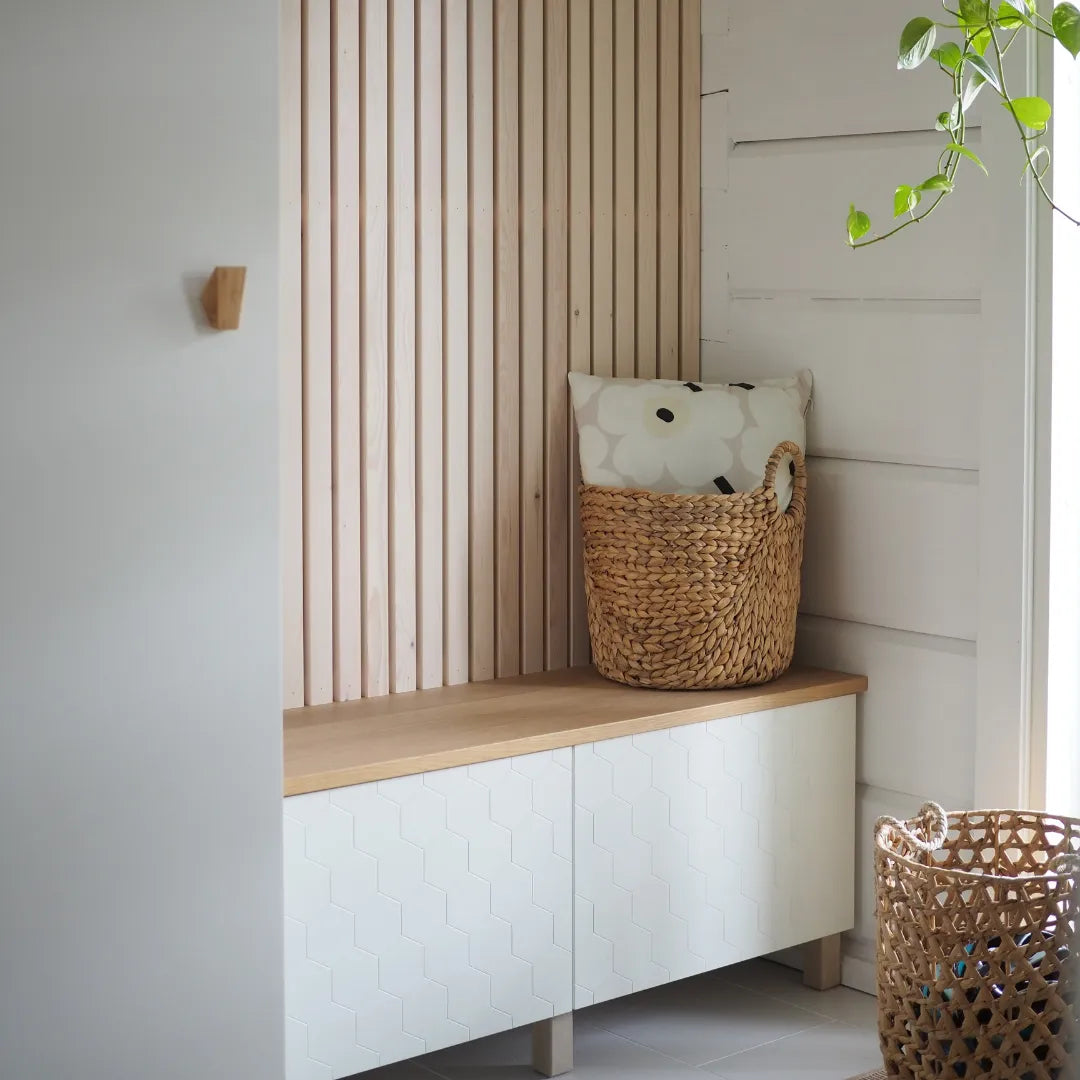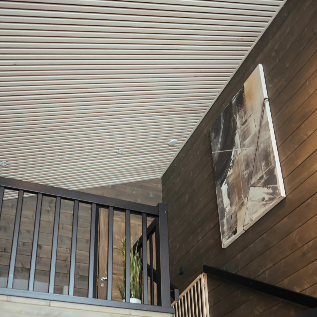 Ceiling/wall slats made from domestic pine are a stylish choice for home interiors.