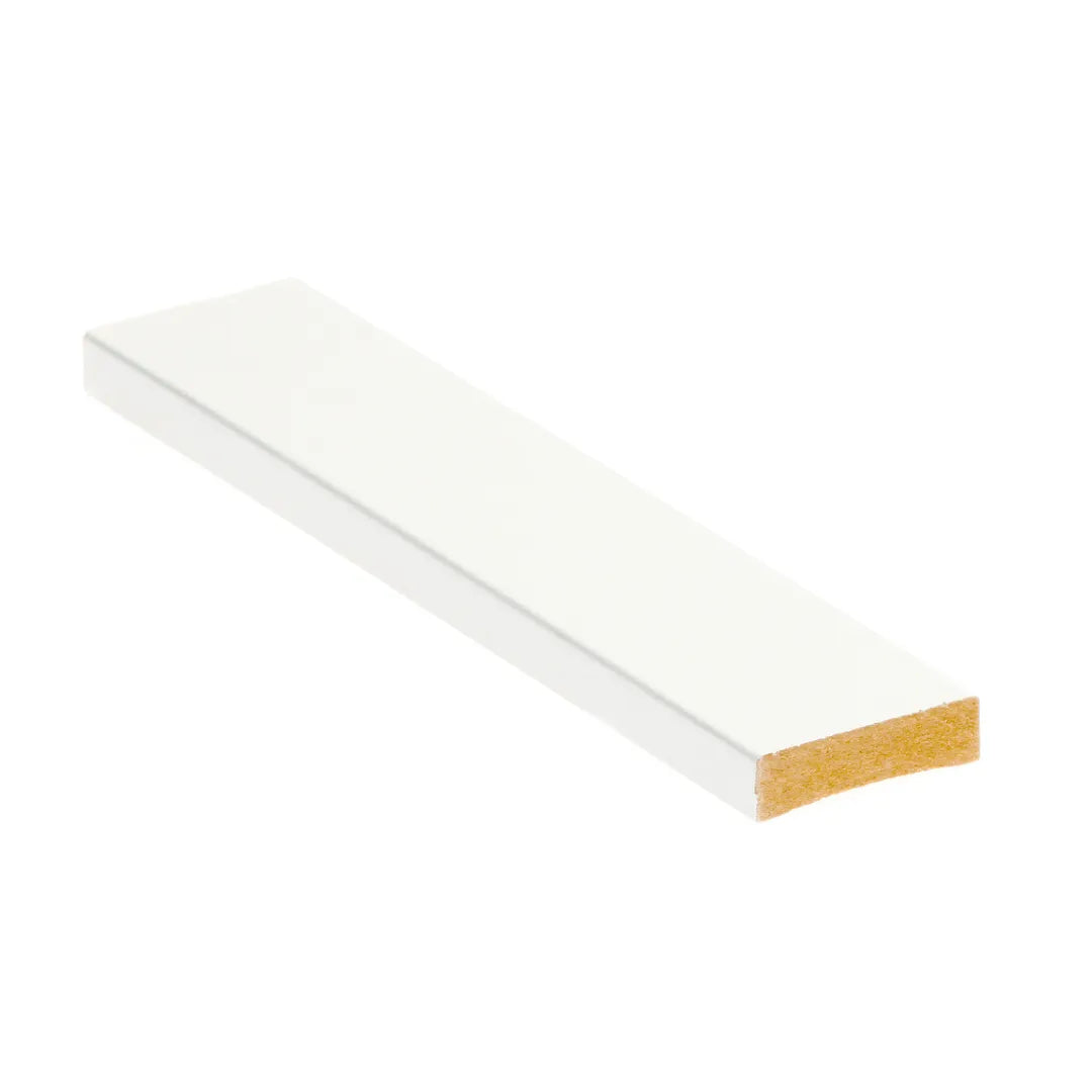 The white MDF cover molding is coated with durable melamine, ensuring a consistent product without color differences.