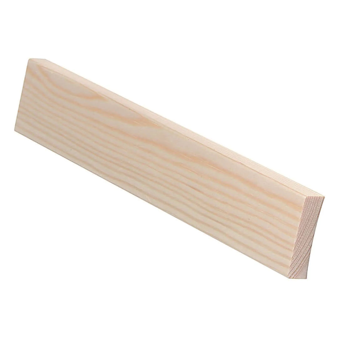 The varnished cover molding made of low-knot pine is suitable for dry spaces, utility rooms, and bathrooms.