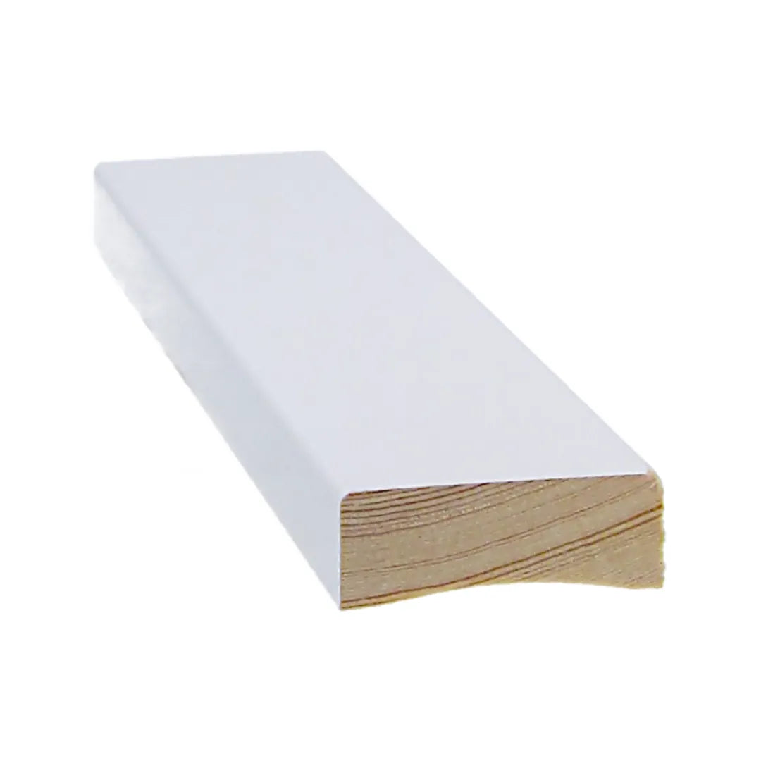 The white cover molding made of knot-free pine is suitable for dry spaces, utility rooms, and bathrooms.