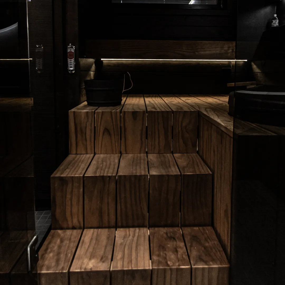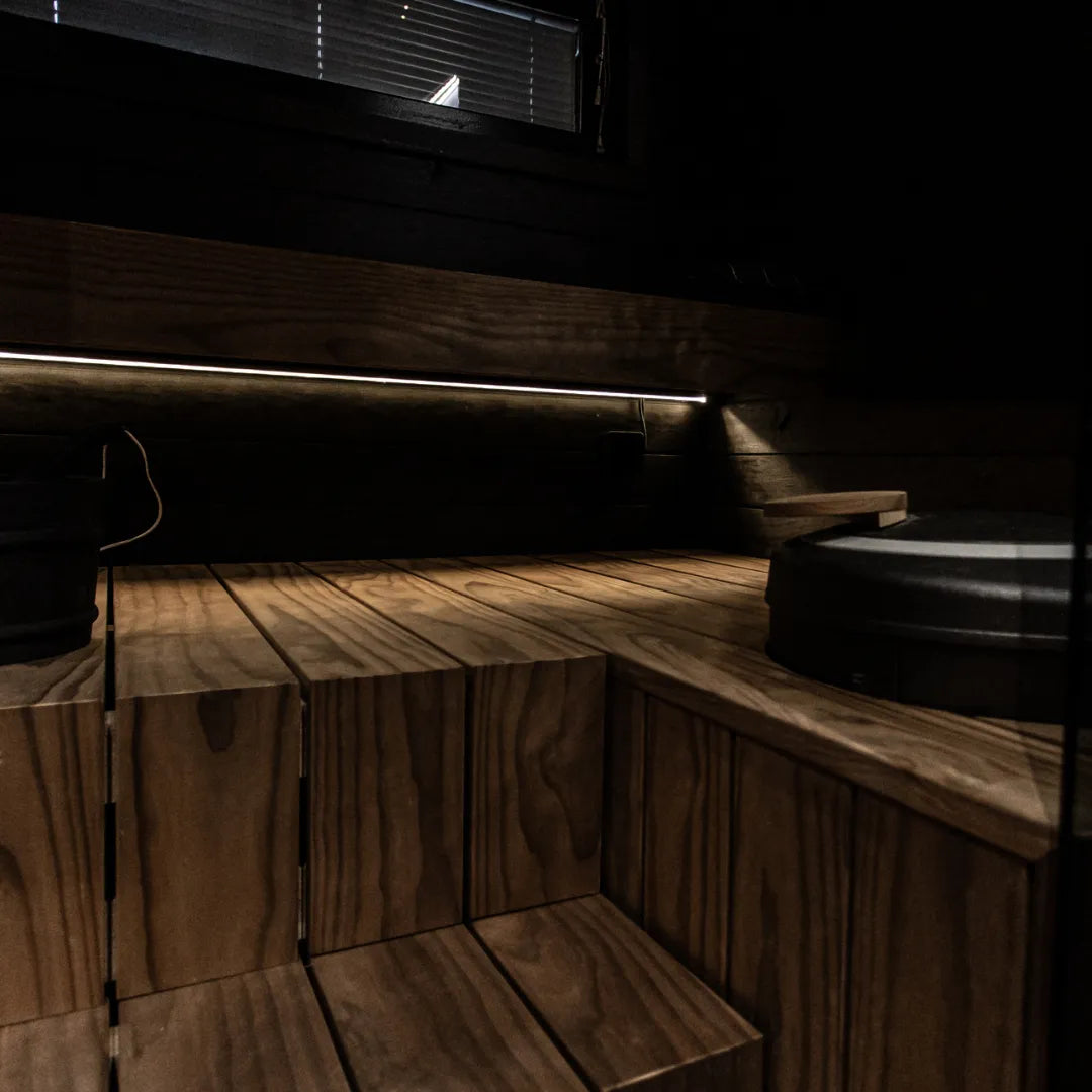 Thermally treated radiata pine bench board is a stylish and durable choice for sauna bench material.