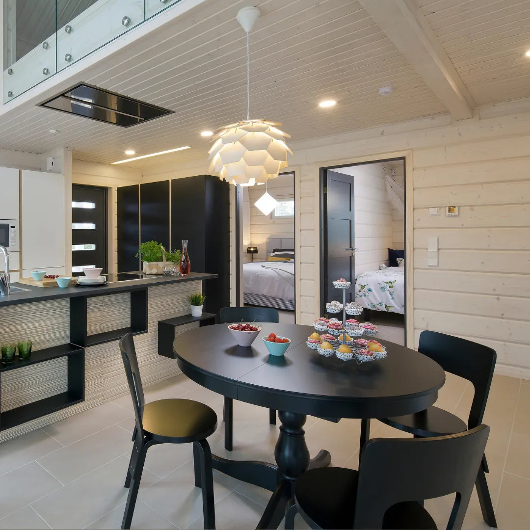 Discover the untreated log panel, a timeless, warm, and natural material choice for both new construction and renovation. This panel is made from high-quality Finnish spruce, known for its versatility and ability to withstand heat and moisture fluctuations. This makes it an ideal choice for all home spaces.