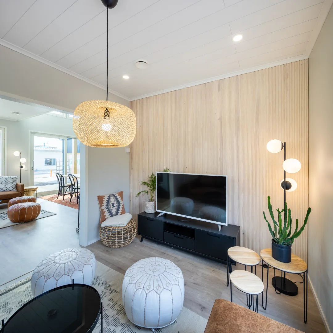 The MDF panel is easy and quick to install. Thanks to the tongue-and-groove all around, the panel is easily extendable and waste pieces are minimal. The STS profile adds sharpness and suits any interior.