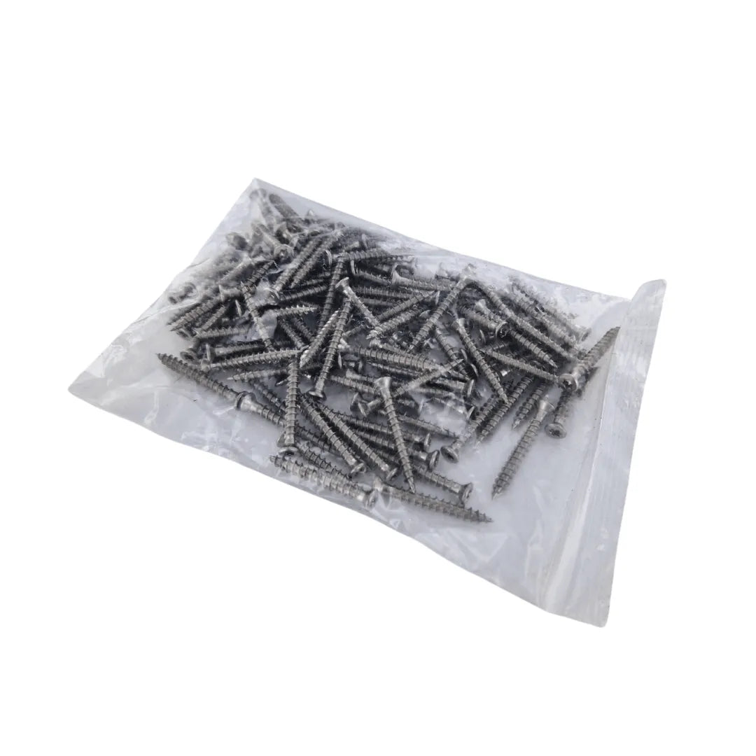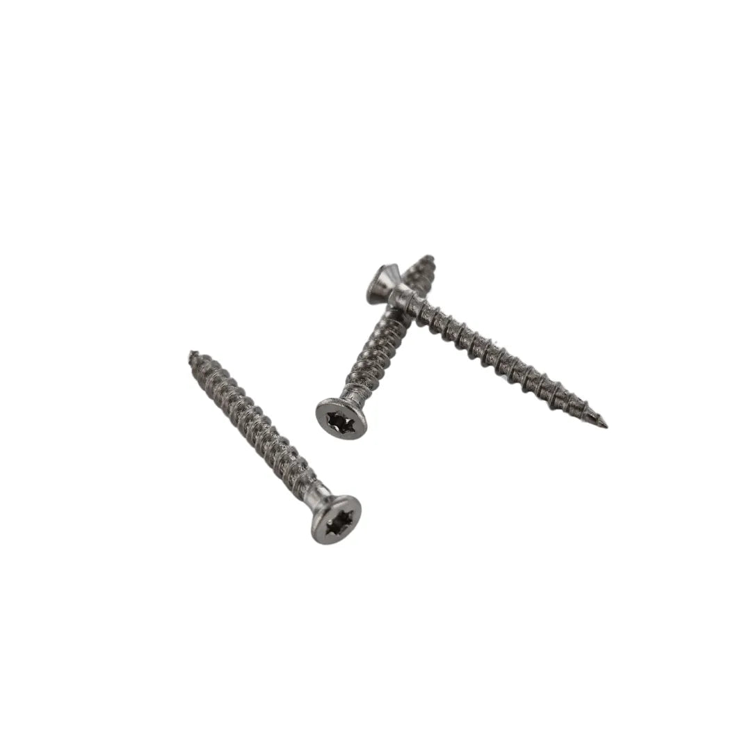 Stainless steel screw for fastening CENT wood composite hidden and starter fasteners.