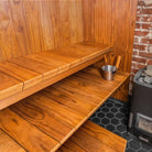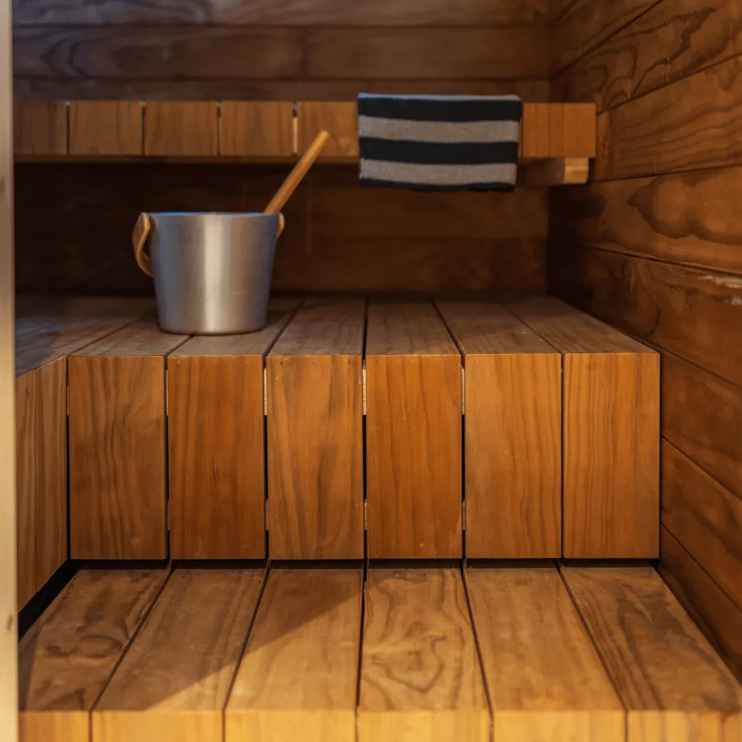Thermally treated radiata pine bench board is a stylish and durable choice for sauna bench material.