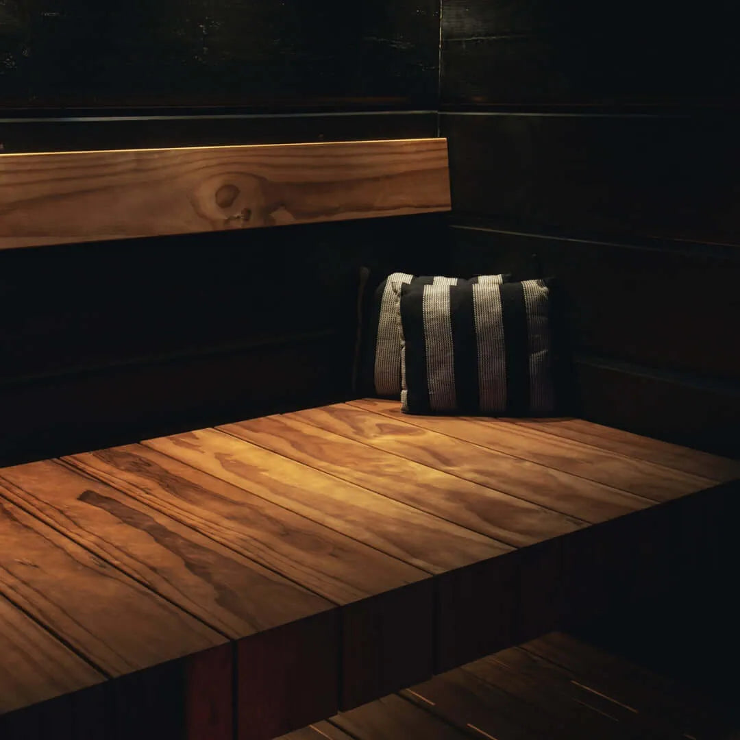 Beautifully brown-toned and knot-free premium grade material for the sauna.