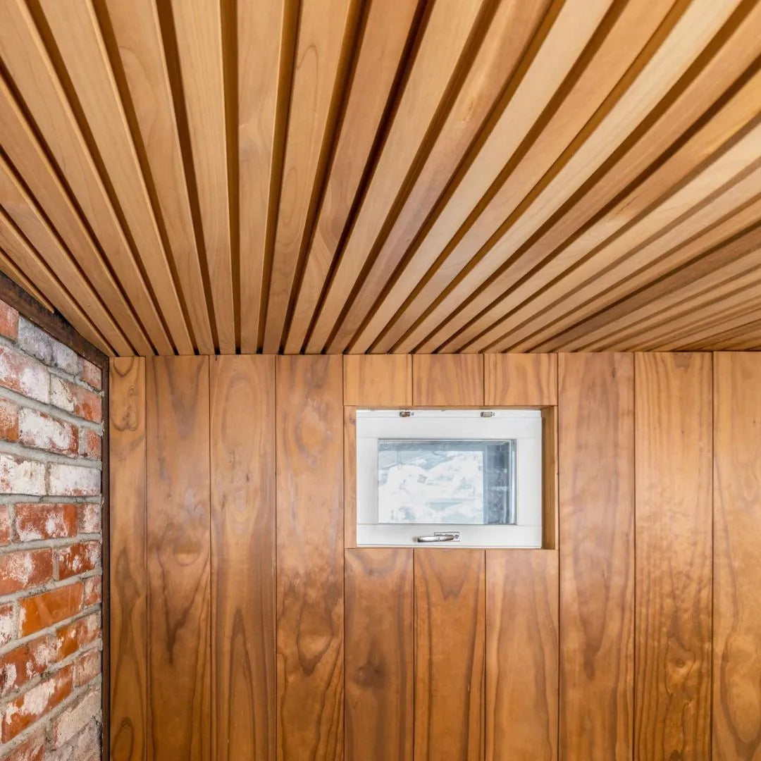 It is recommended to treat the panel with clear sauna protector or paraffin oil, which extends its lifespan and further highlights the wood grain.