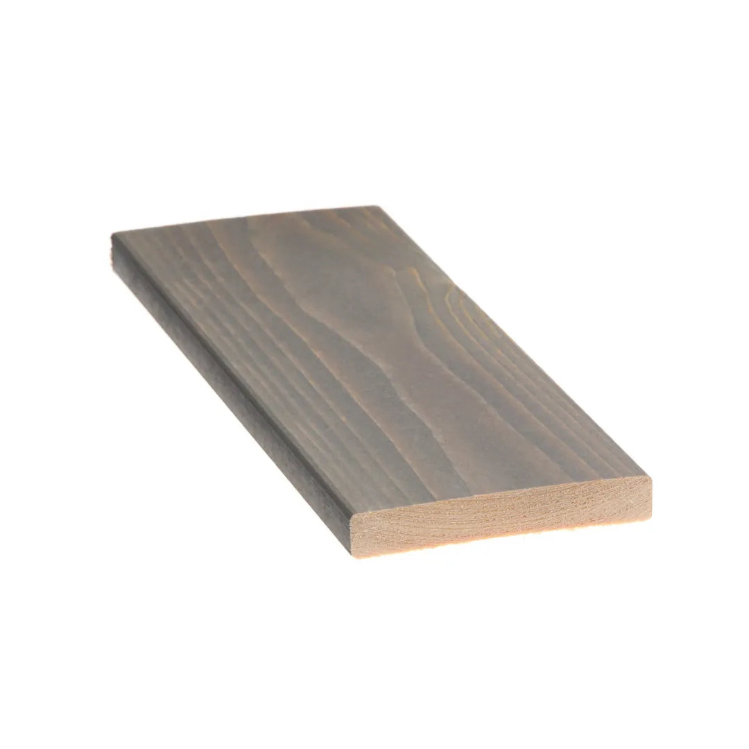 The trim board made in a gray knotty shade matches the gray sauna panel and stylishly finishes the sauna.