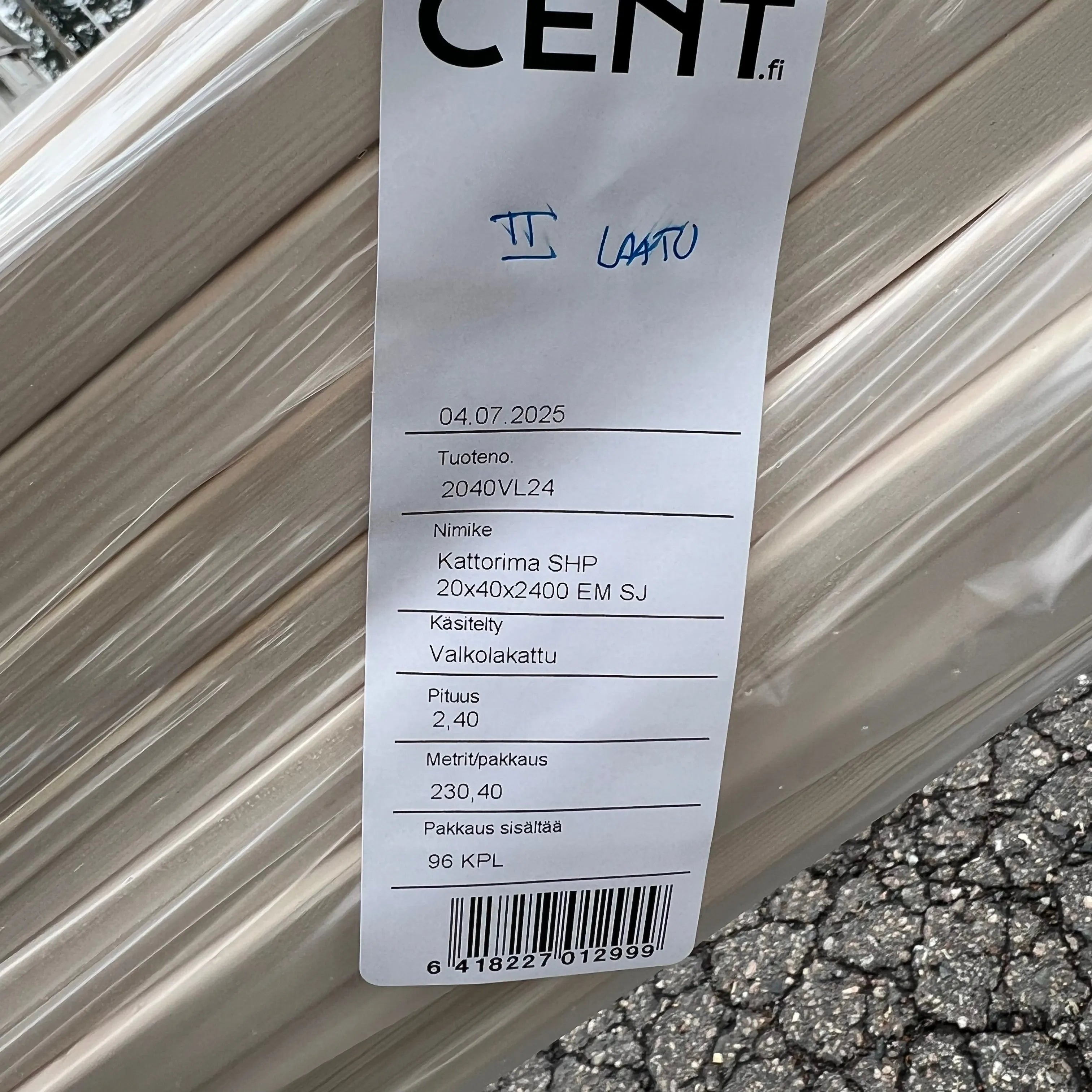 Katto-/Seinärima 20x40x2400, Mänty, Valkolakattu, II-Laatu (230,40jm)
