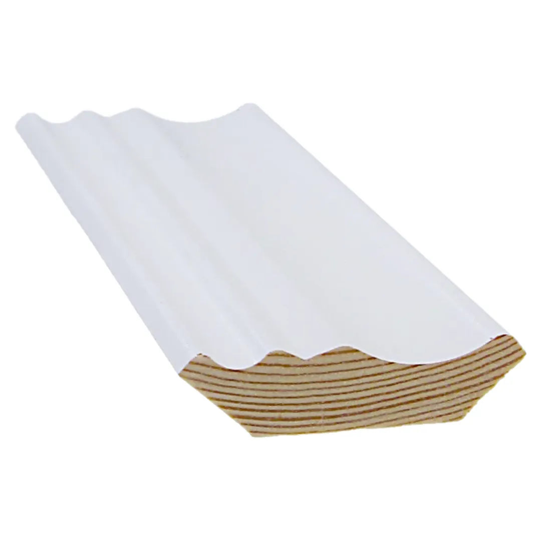 Vähäoksaisesta männystä valmistettu valkoinen koriste kattolista.