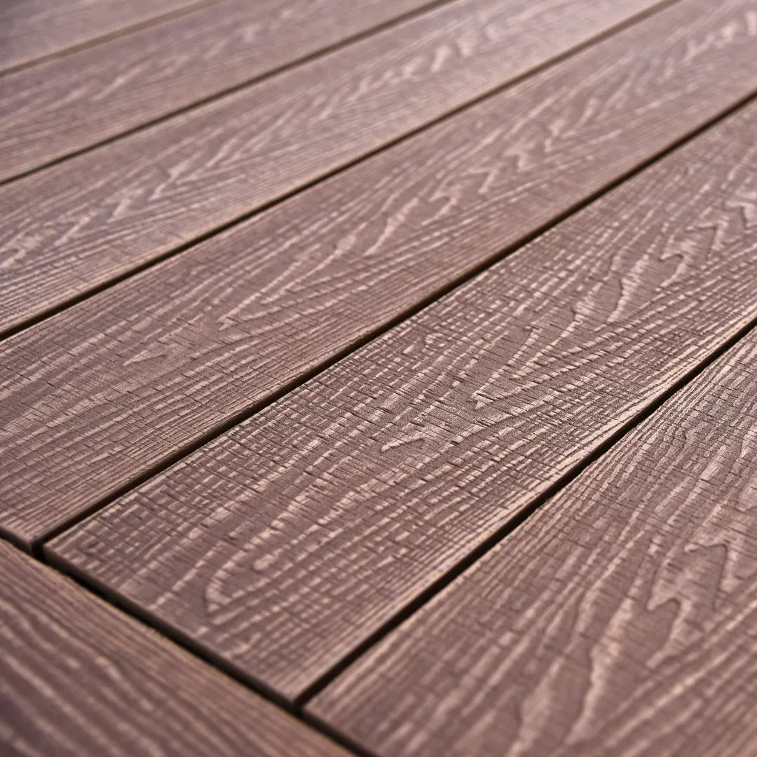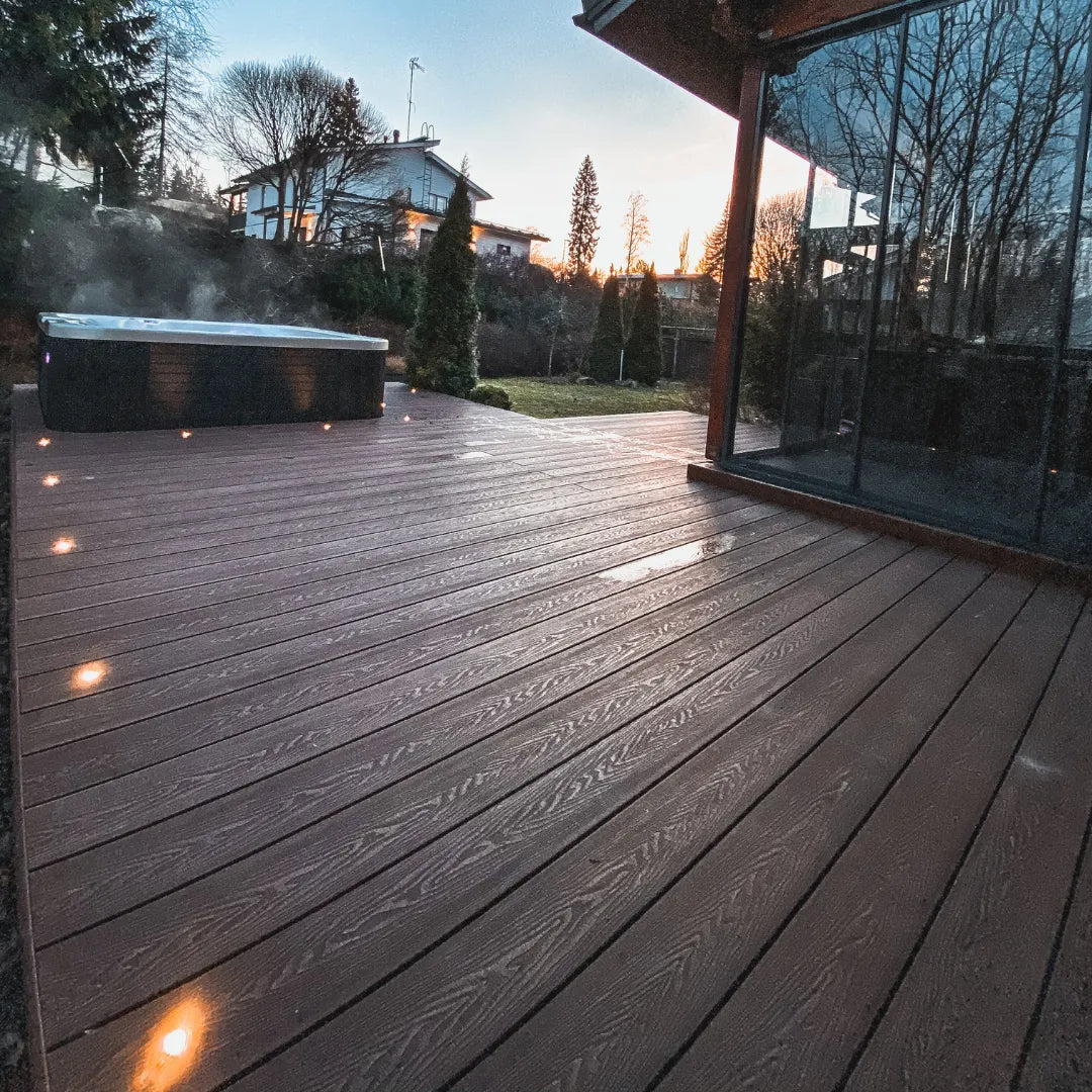 Uusi 3D kuvioinen ruskea komposiittiterassilauta on helppo valinta, kun haluat terassiltasi kestävyyttä sekä helppoutta.
