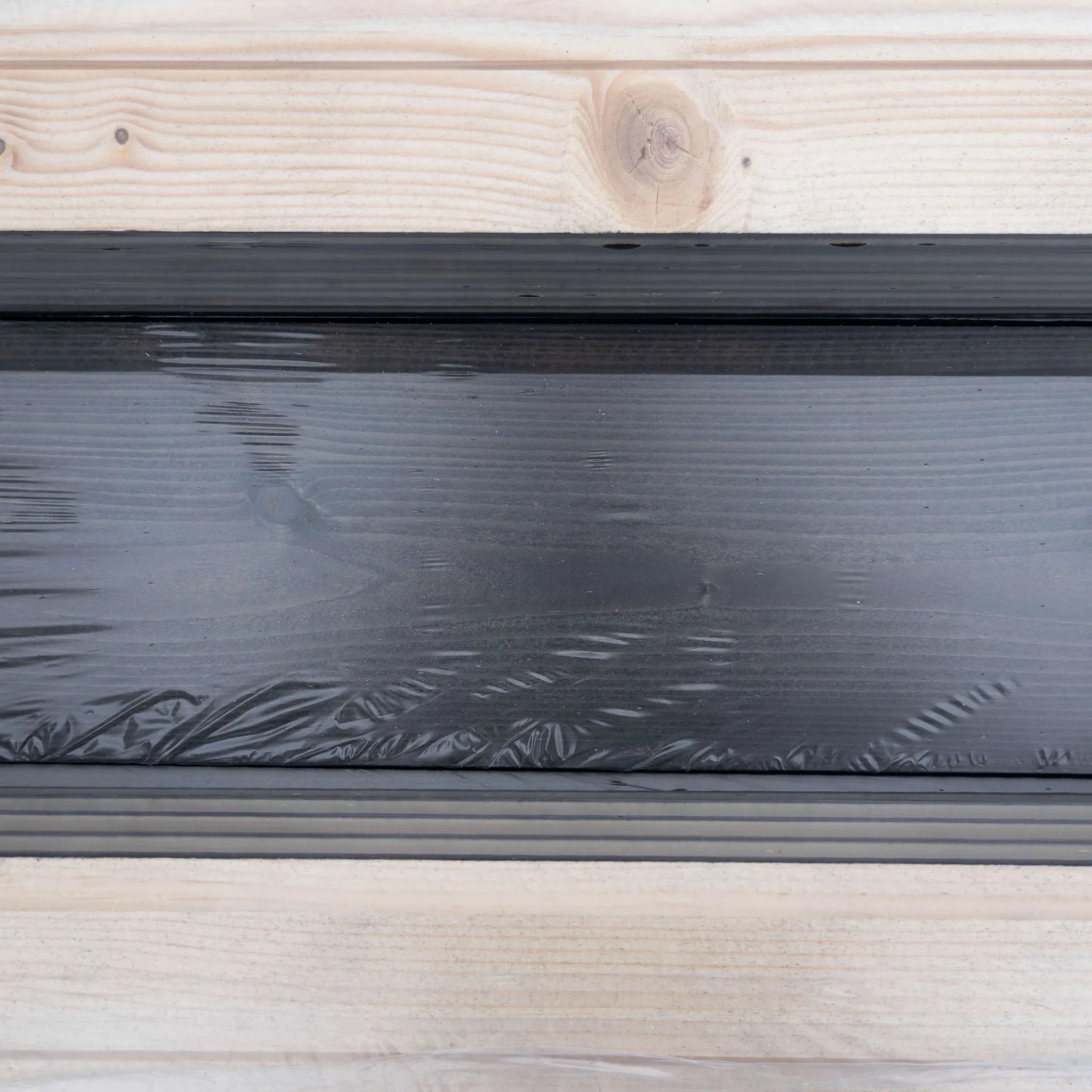 Kotimaisesta kuusesta valmistettu 14x120 saunasuojattu hiilensävyinen saunapaneeli.