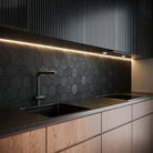 Nämä paneelit on valmistettu Abachi-puusta, joka on huolellisesti petsattu mustaksi. Musta petsaus korostaa puun luonnollista kauneutta ja luo hienostuneen sekä modernin ilmeen.
