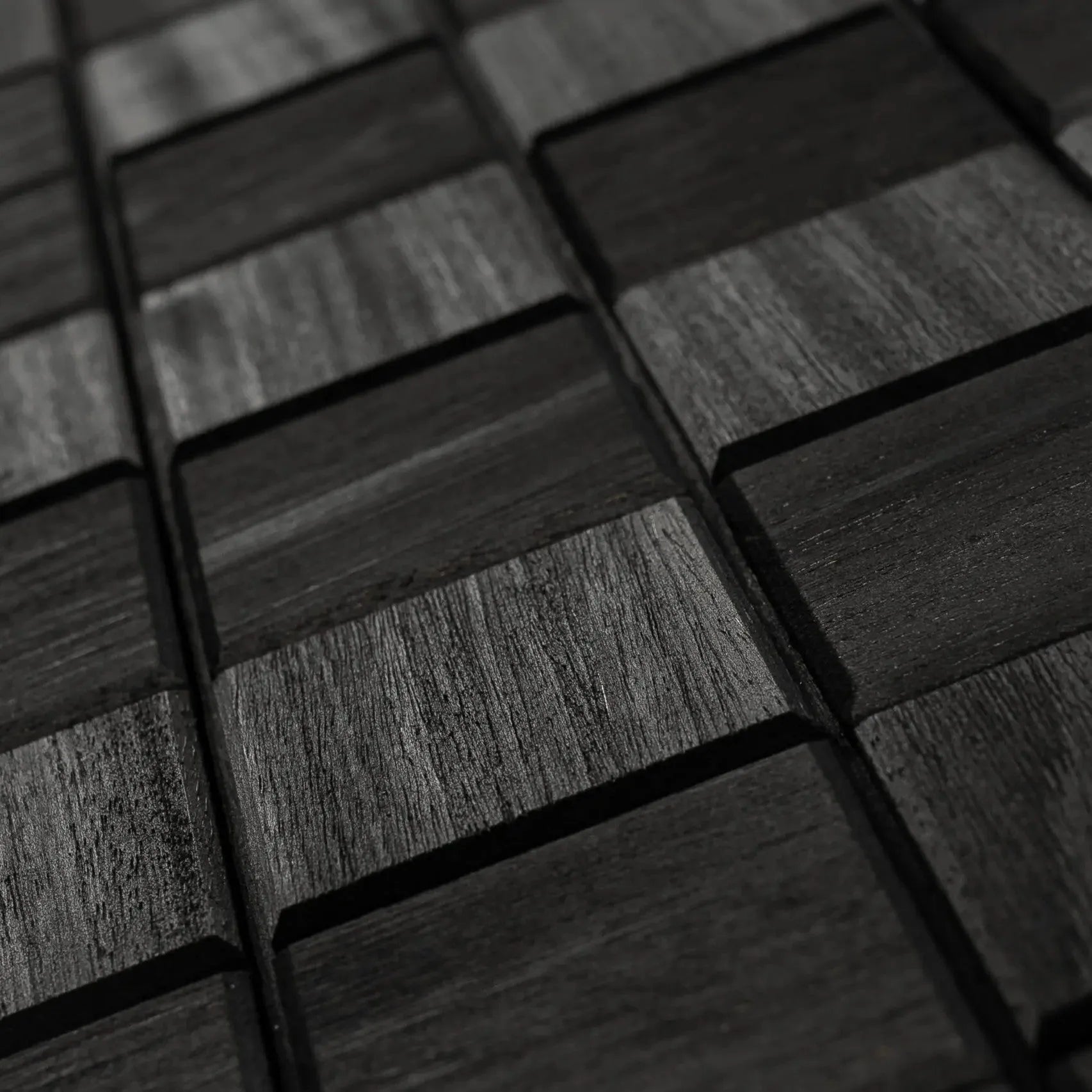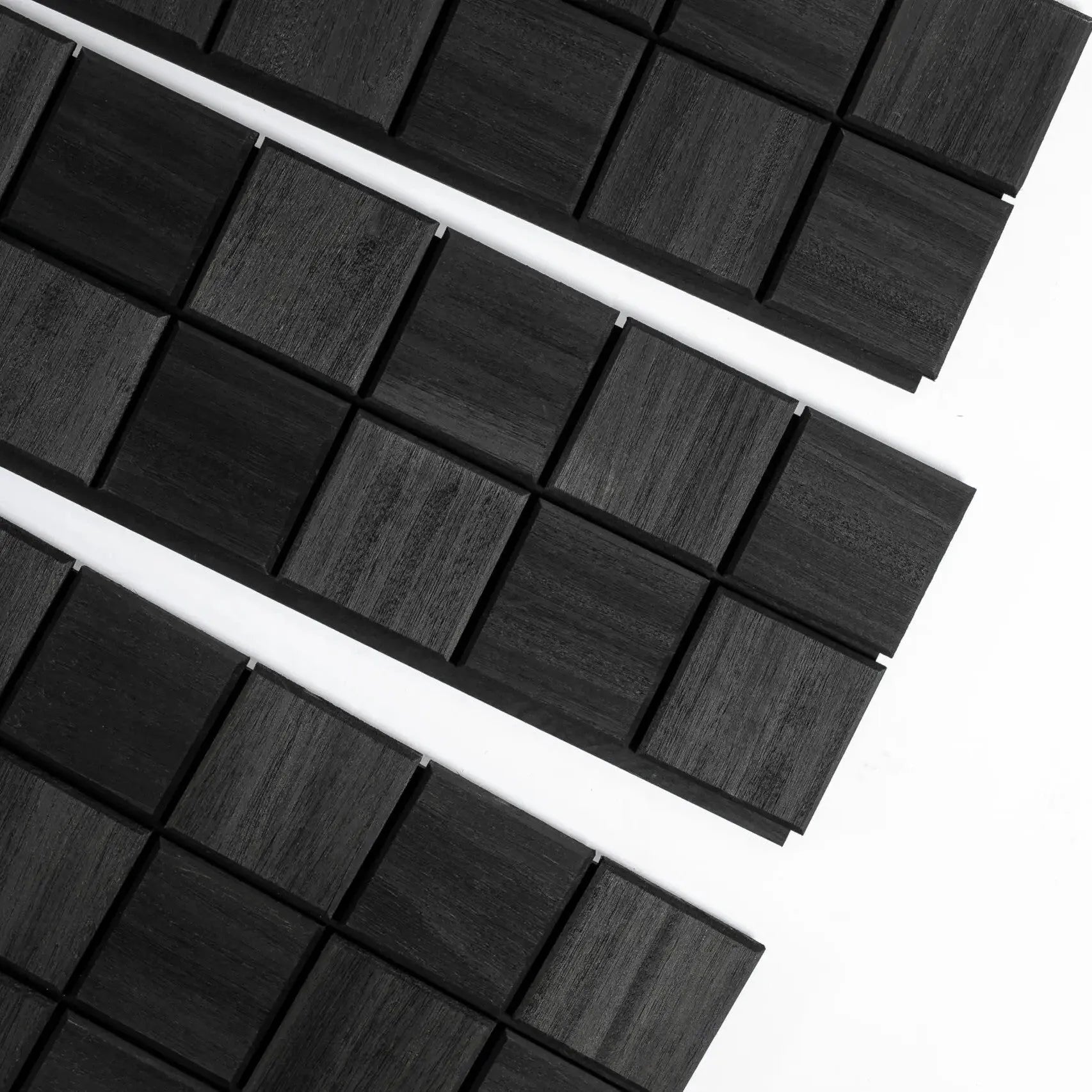 Nämä paneelit on valmistettu Abachi-puusta, joka on huolellisesti petsattu mustaksi. Musta petsaus korostaa puun luonnollista kauneutta ja luo hienostuneen sekä modernin ilmeen.